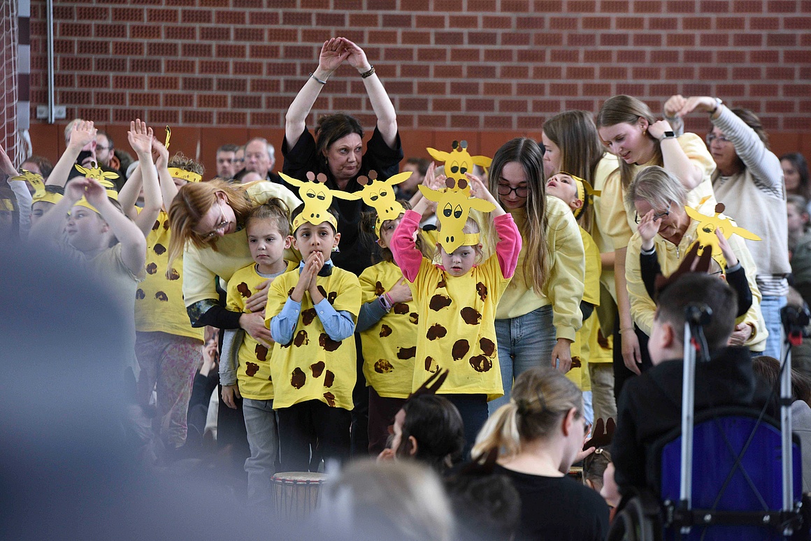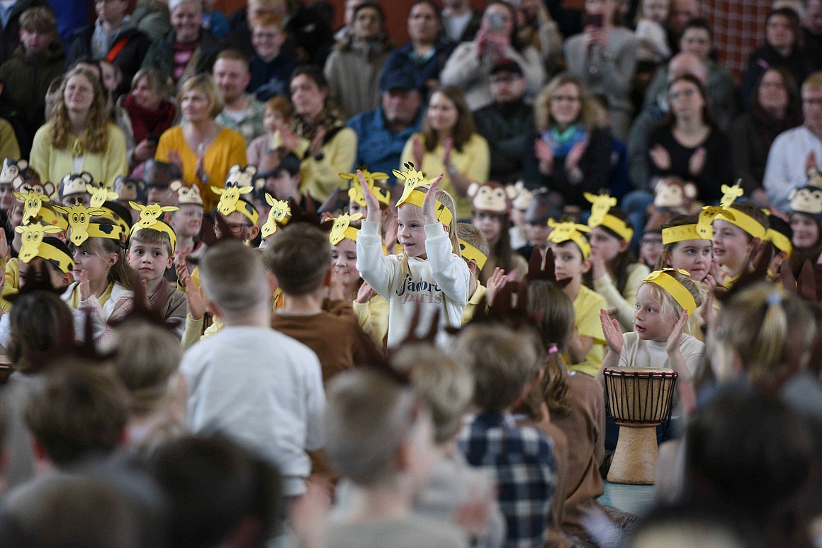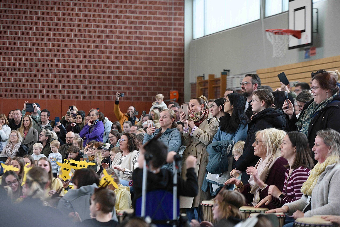 Der Höhepunkt der Woche war die große Abschlussaufführung am Freitagnachmittag. Zahlreiche Eltern, Großeltern und Geschwister waren gekommen, um die Reise nach Tamborena mitzuerleben. Die Turnhalle war bis auf den letzten Platz gefüllt, als die Kinder mit Trommeln, Liedern und Tänzen zeigten, was sie in den vergangenen Tagen gelernt hatten. Das Publikum belohnte die jungen Musikerinnen und Musiker mit begeistertem Applaus.