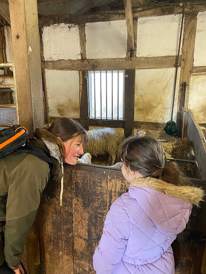 Auf dem Hof konnten die Schüler*innen viel Wissenswertes über das Leben von Schafen und ihren Lämmern erfahren. Sie haben gelernt, wie ein Schäfer arbeitet, wie die Tiere versorgt werden und welche Rolle der Hof für Natur und Landschaft spielt. Besonders beeindruckend war für sie die Möglichkeit, die Schaffamilie aus nächster Nähe zu erleben.