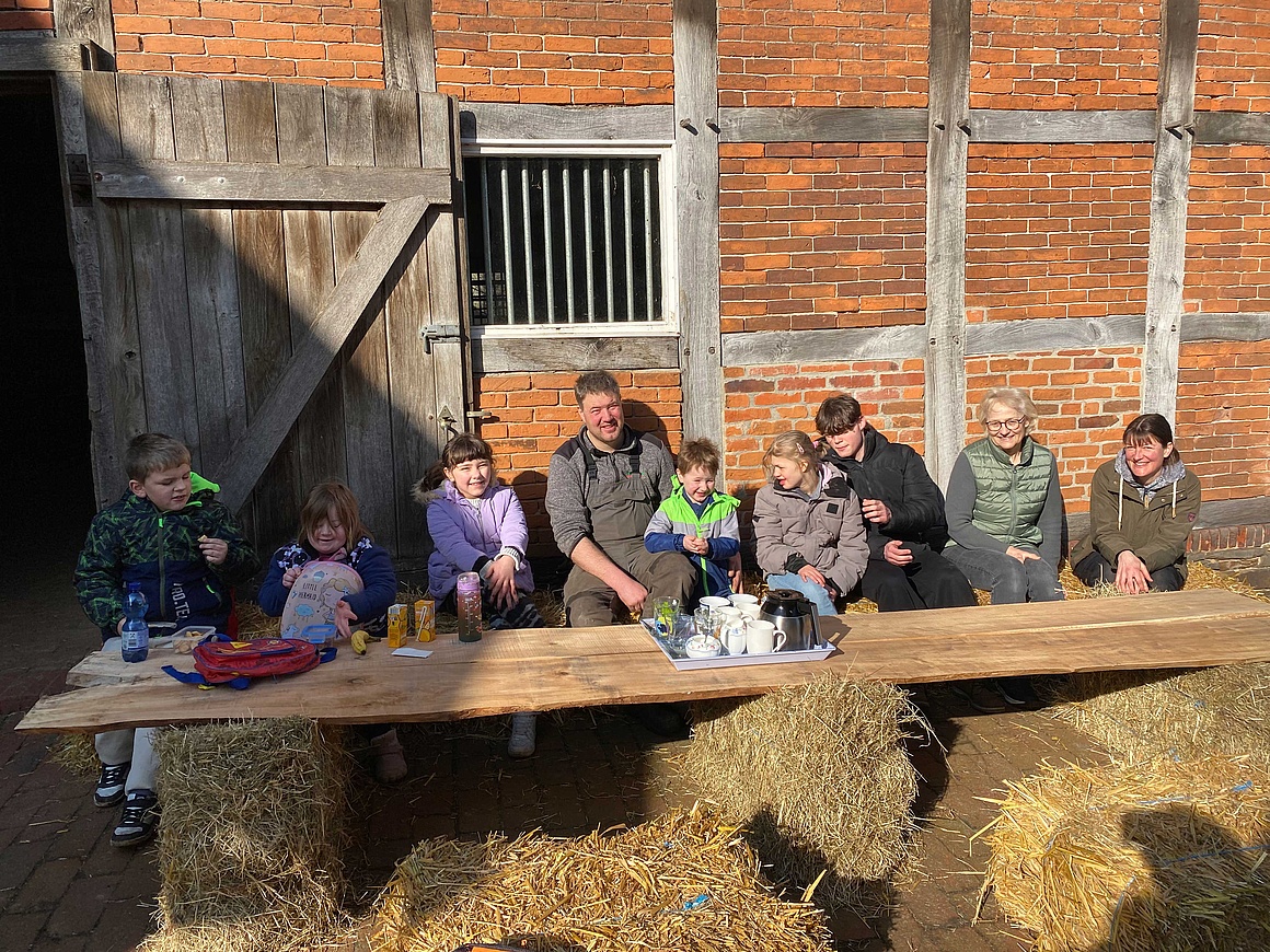 Zum Abschluss wartete noch ein gemütliches Picknick auf einer selbstgebauten Strohbank auf die Klasse – ein tolles Erlebnis, das den Tag perfekt abrundete.