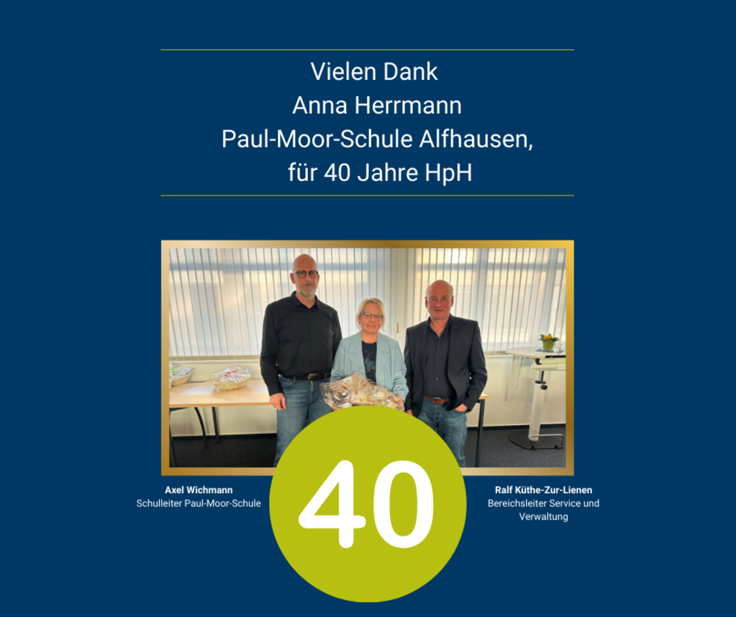 Prokurist Ralf Küthe-Zur-Lienen bedankte sich bei den geehrten Kolleg*innen herzlich für ihre langjährige Treue. Gerade in Zeiten, die von Veränderungen geprägt seien, sei es keineswegs selbstverständlich, einem Arbeitgeber so lange verbunden zu bleiben. Von dieser Erfahrung und Verlässlichkeit profitierten sowohl die anderen Mitarbeitenden als auch Klient*innen - und sicherlich auch vom Humor, der den gemeinsamen Arbeitsalltag bereichere, so Küthe-Zur-Lienen.