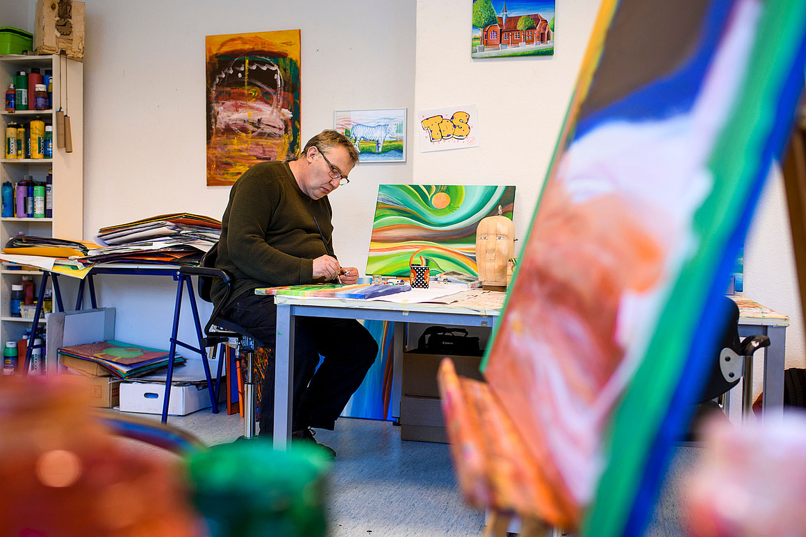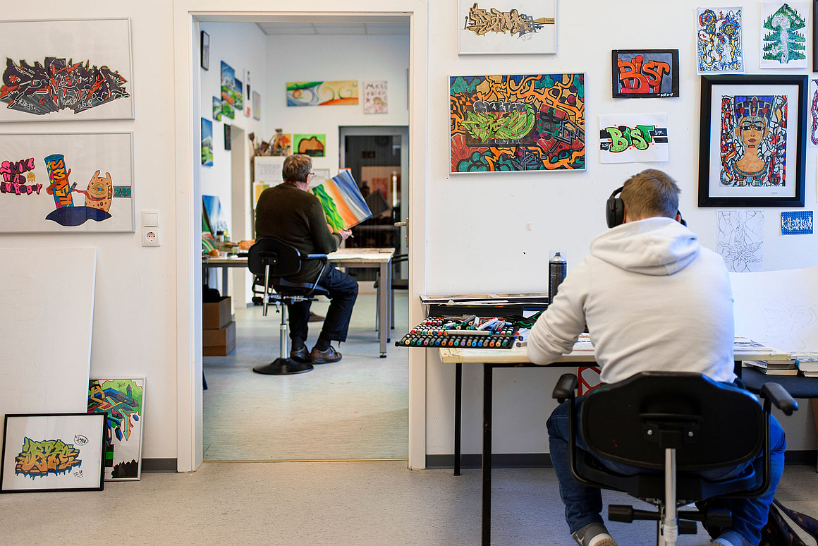 Die Kunstwerkstatt ermöglicht Menschen mit Beeinträchtigung künstlerisch zu arbeiten, ihre künstlerischen Begabungen zu entdecken und kreative Fähigkeiten auszubilden.