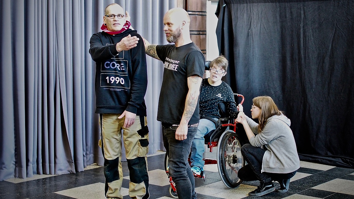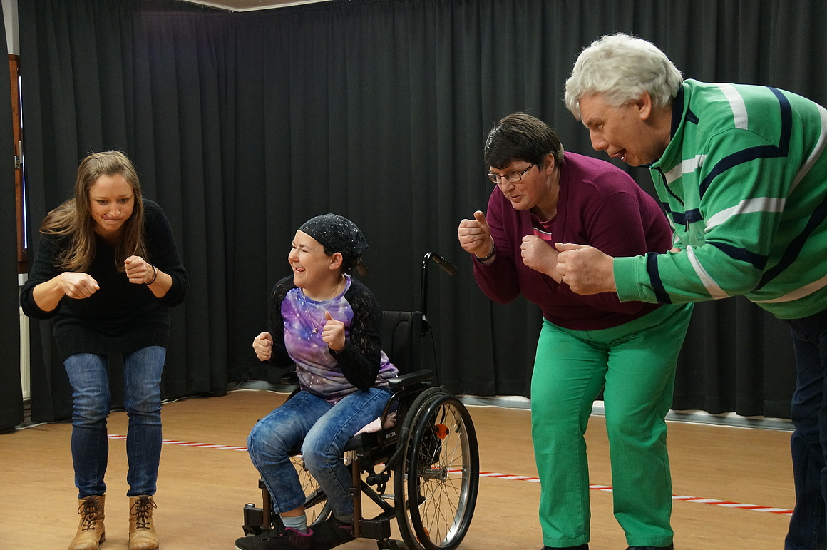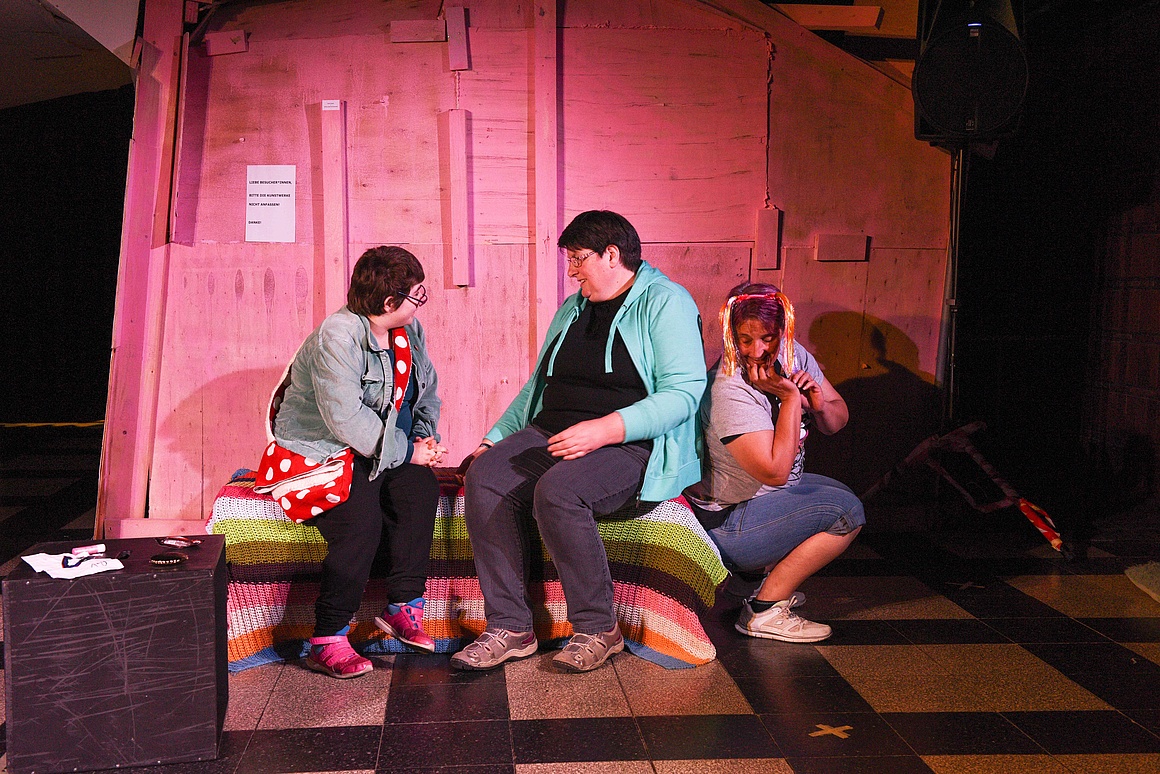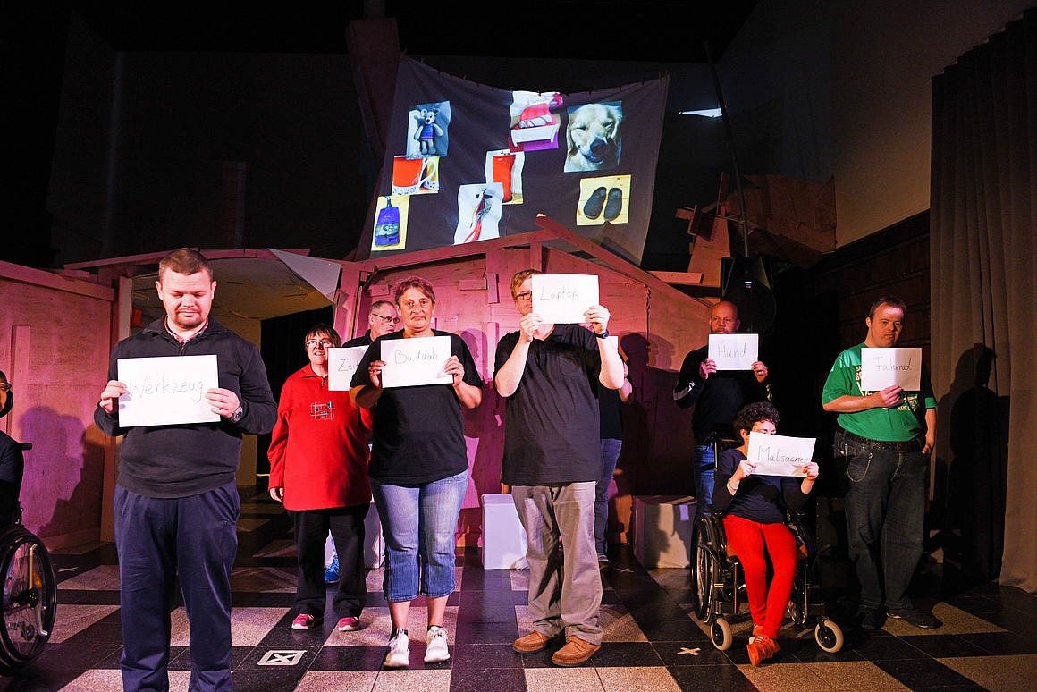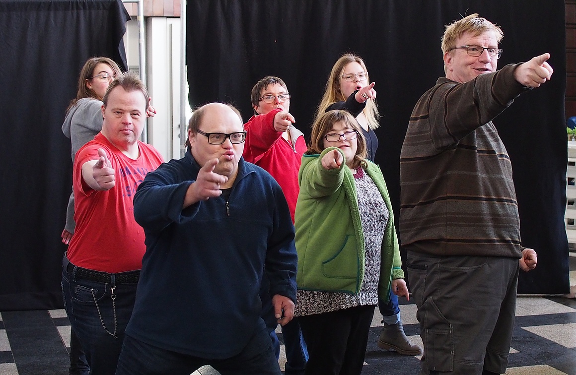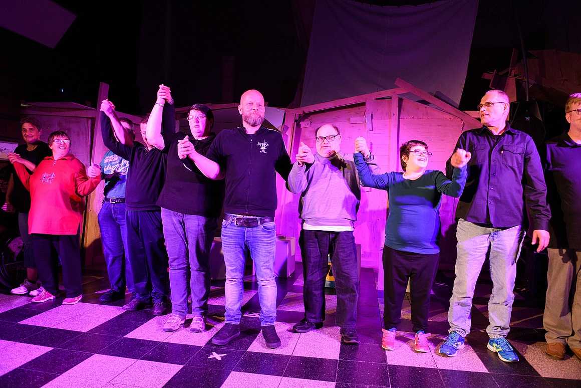 Gestartet hatte die HpH im Jahr 2015 mit einem ersten Aufruf in ihrer Werkstatt, wer Lust hätte, sich an einer inklusiven Theatergruppe zu beteiligen. Mit der Umsetzung des von Aktion Mensch geförderten Projektes wurde die tpw - theaterpädagogische werkstatt osnabrück betraut. Die Institution ist sehr erfahren auf dem Gebiet der theaterpädagogischen Arbeit. Wie sich die Gruppe unter der Leitung der Theaterpädagog*innen Heidi Vollprecht, Matthias Caspari und Liane Kirchhoff und mit Unterstützung des Heilerziehungspflegers Christian Vox jedoch entwickeln wird, welche Themen sie hervorbringt, welche Ideen für die Umsetzung, welche Erfahrungen sie im persönlichen Ausdruck und im spielerischen Können gewinnen werden– all das war Teil einer Reise, die die Beteiligten gemeinsam erleben durften.