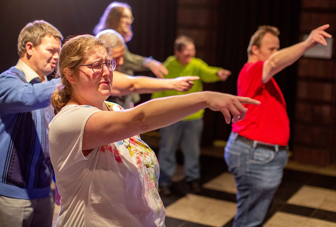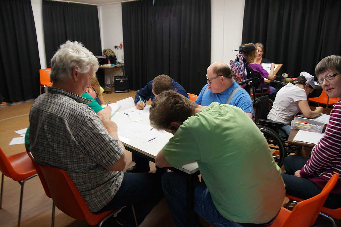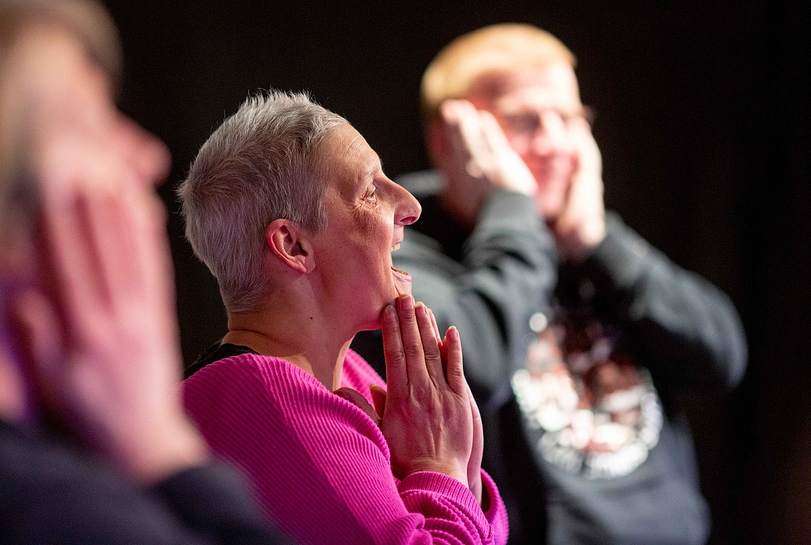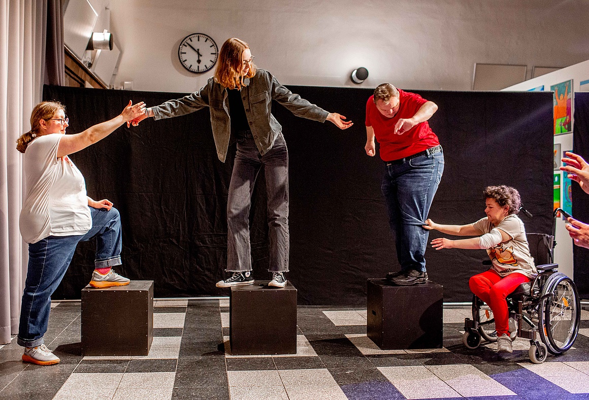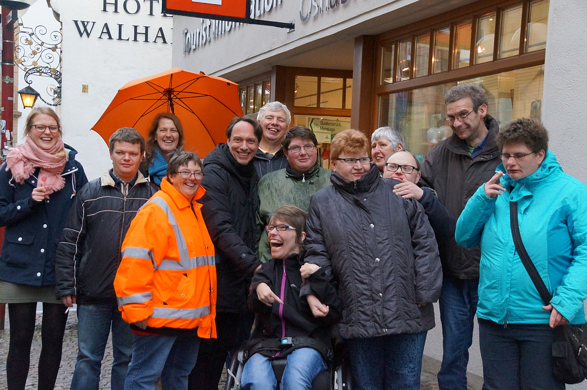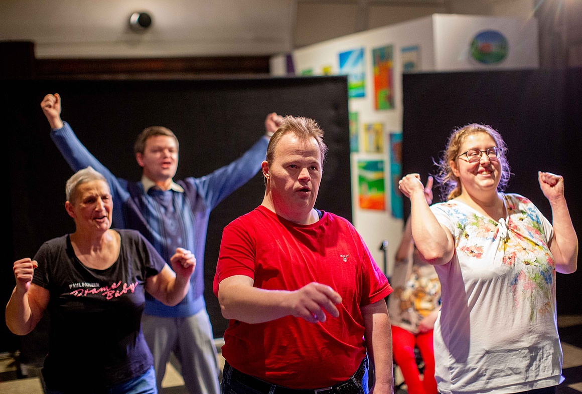Gestartet hatte die HpH im Jahr 2015 mit einem ersten Aufruf in ihrer Werkstatt, wer Lust hätte, sich an einer inklusiven Theatergruppe zu beteiligen. Mit der Umsetzung des von Aktion Mensch geförderten Projektes wurde die tpw - theaterpädagogische werkstatt osnabrück betraut. Die Institution ist sehr erfahren auf dem Gebiet der theaterpädagogischen Arbeit. Wie sich die Gruppe unter der Leitung der Theaterpädagog*innen Heidi Vollprecht, Matthias Caspari und Liane Kirchhoff und mit Unterstützung des Heilerziehungspflegers Christian Vox jedoch entwickeln wird, welche Themen sie hervorbringt, welche Ideen für die Umsetzung, welche Erfahrungen sie im persönlichen Ausdruck und im spielerischen Können gewinnen werden– all das war Teil einer Reise, die die Beteiligten gemeinsam erleben durften.