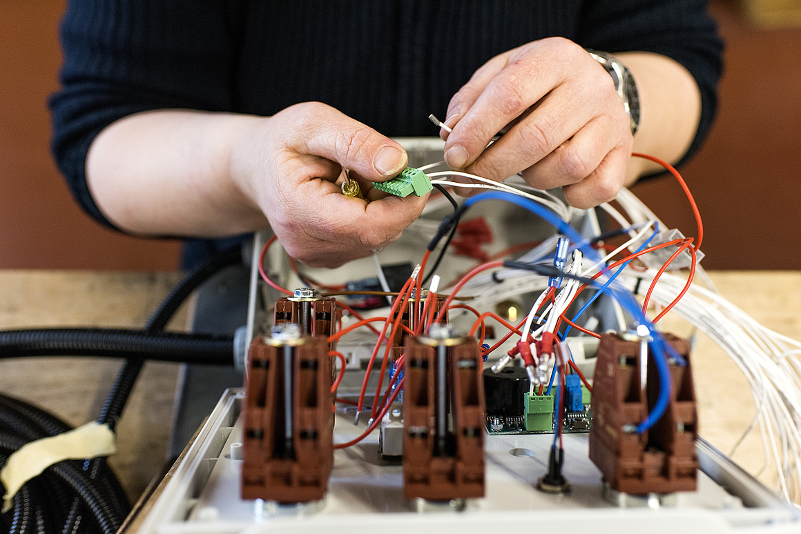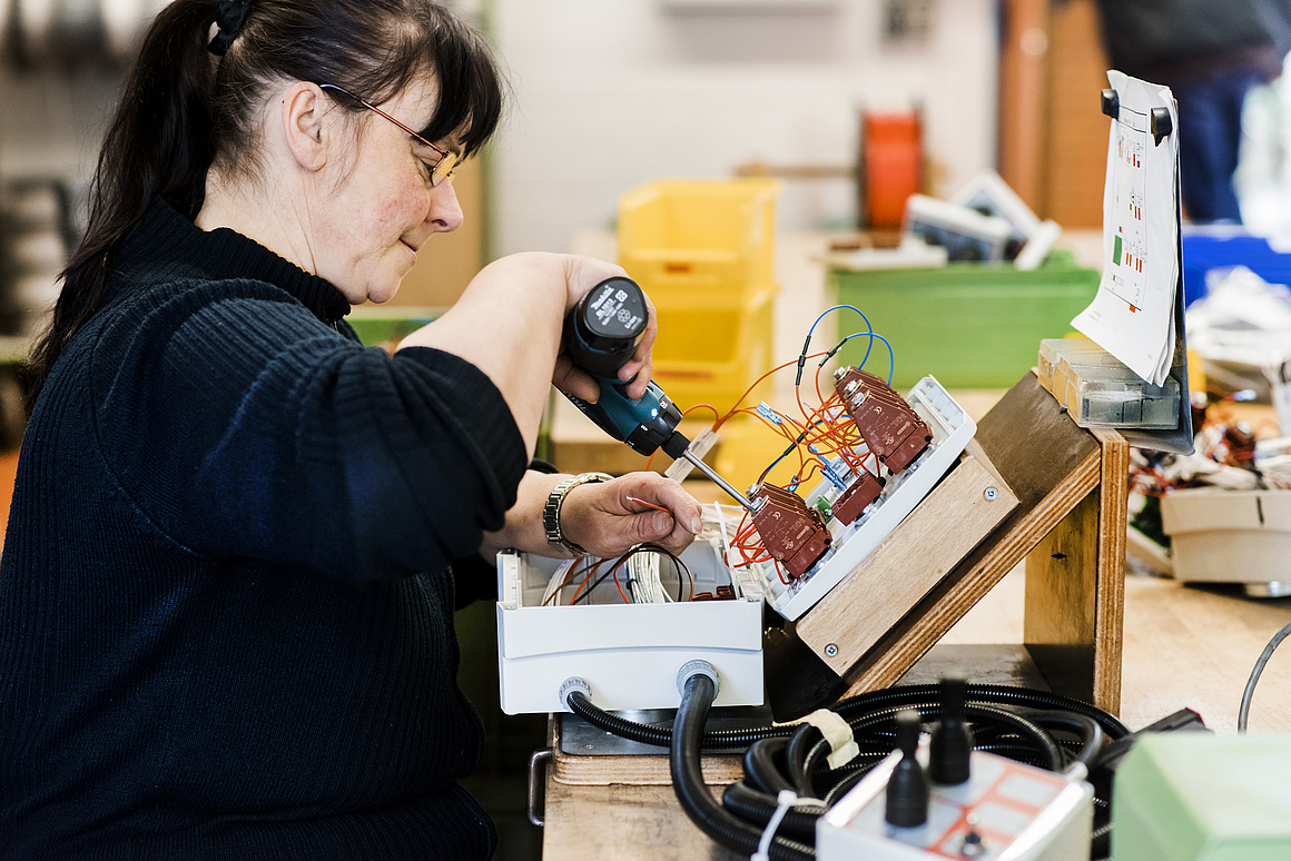 Unser Bereich Elektromontage kann individuelle, kundenspezifische Montagetätigkeiten übernehmen wie z.B. Stableuchten montieren, Kabelbäume vorbereiten und prüfen, Bedien- und Steuerelemente herstellen und Elektronikbauteile termin- und qualitätsgerecht nach VDE erarbeiten.