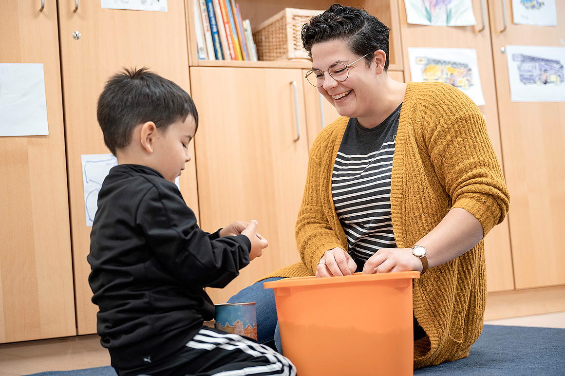 Die 33-Jährige schätzt ihre Aufgaben, zu denen der Austausch mit den pädagogischen Mitarbeiter*innen im Kinderzentrum, als auch die Angehörigen gehören. Für Übungen, die die Eltern zuhause wiederholen sollen, gibt Amelie kleine Informationsbriefe mit oder ruft Eltern an.